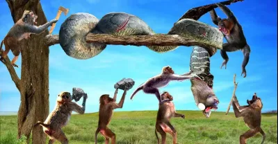Dire! Angry Baboons Fight Madly To Save Teammates From Torture From The Mouth Of The Giant Python