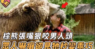 棕熊襲擊!張嘴狠咬嚇癱眾人,卻不料牠竟秒變乖巧:你來了!