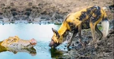 أقترب هذا الكلب البري من نهر التماسيح ولكن ما حدث لم يكن متوقعا/عالم الحيوان