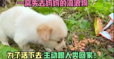 一窩失去媽媽的流浪狗,蜷縮在草叢中,為了活下去,主動跟人類回家!