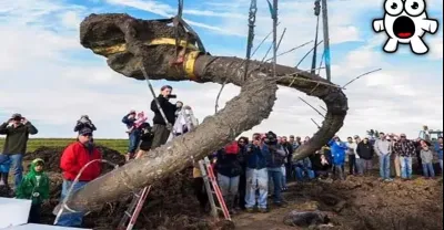 好傷心!!這條10米長的水蟒在巴西被發現,直到被重型設備吊起……