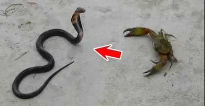 驚人的螃蟹攻擊眼鏡王蛇 - 螃蟹與眼鏡蛇