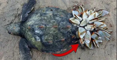 在墨西哥和西班牙去除海龜殼上的藤壺