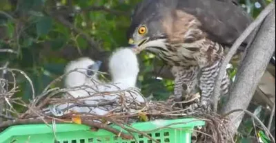 鳳頭蒼鷹媽媽細心餵食雛鳥!