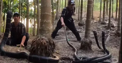 看到世界上最大的眼鏡王蛇爬上街,村民們嚇壞了