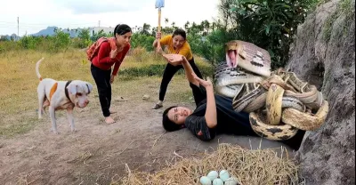 3 Brave Girls With Pitbull Dog Confront 100 Poisonous Snakes That Lay Eggs In The Cave