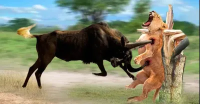 角馬為掠食者的猛烈和痛苦的結局而戰 野生動物的攻擊