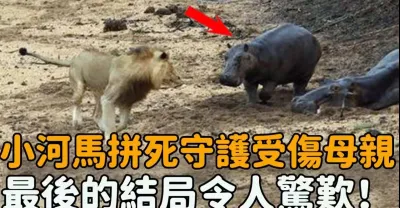 雄獅偷襲受傷的河馬媽媽,小河馬竟衝出來拚命救母,最後的結局令人驚歎!