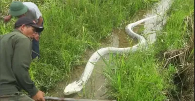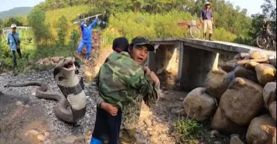 數百公斤巨蟒在溪岸被活捉,四位師生變金告別