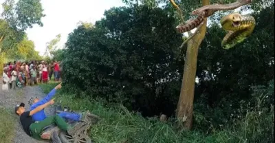 2 Thanh Niên Sợ Hãi Đâm Cả Người Và xe Vào Gốc cây Khi phát Hiện Cắp Rắn Khổng Lồ nằm trên cây