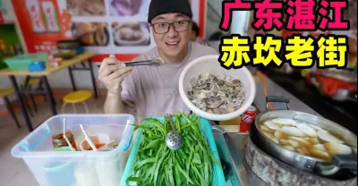 廣東湛江赤坎老街,海鮮撈粉老井油條,牛雜打邊爐,廣式特色糖水Chikan old street snacks in Zhanjiang