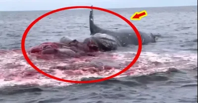 鯨爆有多恐怖?罕見的鯨魚海中自爆,鮮血染紅海域,內臟從肚子裡瘋狂噴出!膽小勿入!