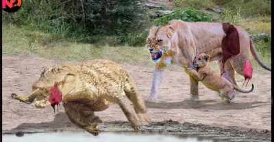 換取小獅子的生命獅子媽媽用一條腿給鱷魚!