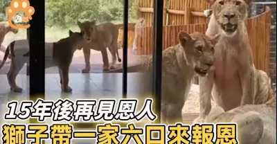 相隔15年未見,獅子一眼就認出了救命恩人,次日帶一家六口來看望恩人送驚喜!