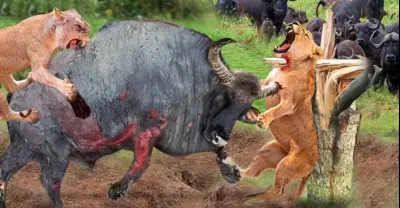 無休止的戰鬥!驕傲的獅子被強大的水牛無情地毆打