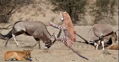 Amazing! Mother Gemsbok Knock Down Cheetah With Their Horns To Rescue Her Baby - Cheetah vs Gemsbok