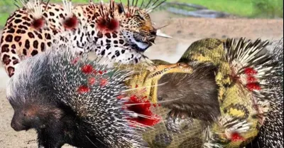 Porcupine Too Danger! Leopard and Python Risked Their Lives When Hunting Porcupine But Fail