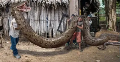 400公斤巨型蟒蛇幾秒鐘大壩捕捉