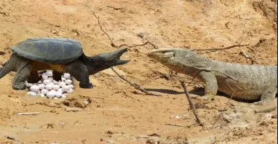 蜥蜴捕食海龜蛋,下一秒意外突然發生