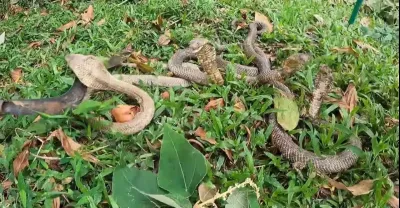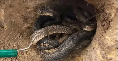 太可怕了——當一大群眼鏡蛇衝到他的頭上時,這個人很害怕