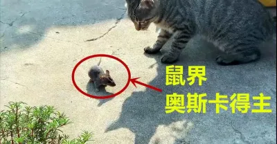 貓堵老鼠這畫面一輩子都難得一見!