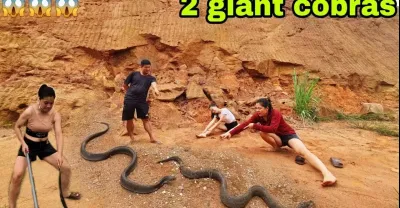 3 brave hunters confront the giant king cobra in the savanna I Girl Catches Snake
