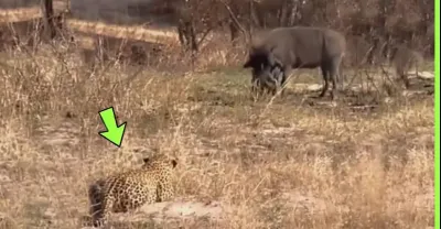 野豬沒有看到豹子在他身後
