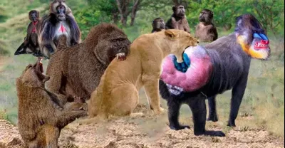 Lion Tortures Baby Baboon Brutally, Baboon Family Hunts To Destroys Lion
