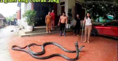 The girl caught two 30kg king cobras that entered the house causing danger I Girl Catches Snake