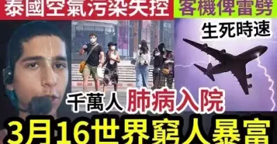 印度神童發達預言!3月16日『全球窮人忽然暴富?』泰國空氣「污染極嚴重」上年度「千萬人肺病入院」客機空中「被雷劈」爆出奇異光芒!俄飛彈險「擊中澤連斯基!」8/3世界大大鑊「國際新聞大集合」