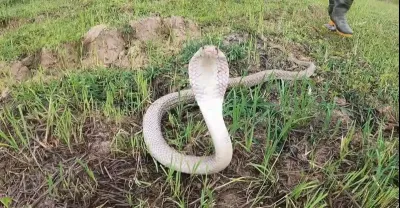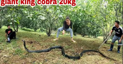 在高山上成功抓到最大的 20 公斤眼鏡王蛇