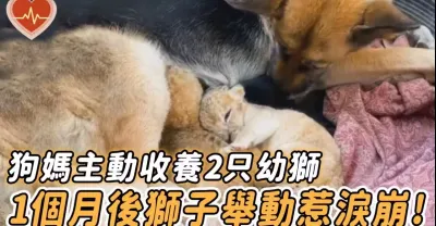 兩只幼獅出生便被拋棄,狗媽主動叼懷中喂乳,1個月後鏡頭記錄下感人一幕!