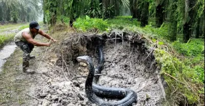 在沼澤中發現的最大的蟒蛇,巨大的蛇