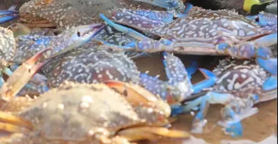 趕海螃蟹合集:廢棄養殖場的螃蟹太多啦,妹子走一路撿一路,螃蟹一個比一個大
