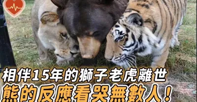 獅虎熊彼此相伴15年,儅獅子和老虎相繼去世後,熊的反應讓人震撼!