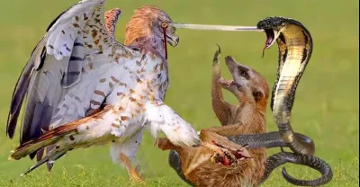 罕見的對決!超級聰明的貓鼬用這個技巧欺騙老鷹並擊倒眼鏡蛇逃跑