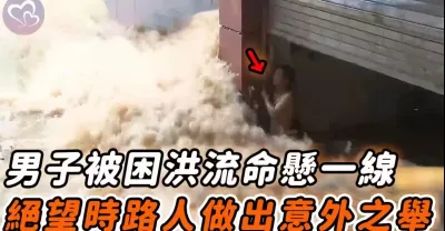 洪水來襲,男子被困命懸一線,絕望時路人竟做出驚人之舉