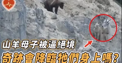 山羊母子被棕熊逼入絕境,羊媽用身體緊護小羊