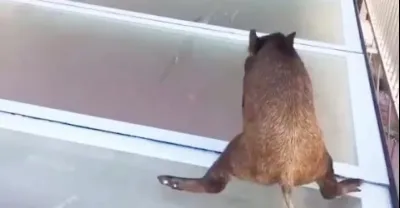 你沒見過這麼搞笑的野豬誤入玻璃橋