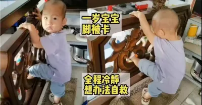 寶寶腳一直擺弄著什麼被卡住,不哭不鬧想辦法自救