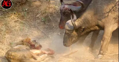 難以置信動物襲擊...一頭獅子被瘋狂的水牛-悲慘地殺死了