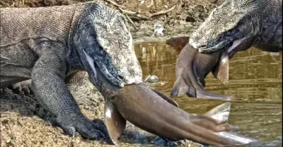 科莫多巨蜥吞下大鯊魚|獵殺黑鰭鯊。