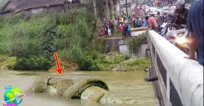 市民們驚呆了,在河中看到蟒蛇與鱷魚的激烈對決!結束.....