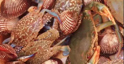 小妹退潮後趕海,蝦蟹成群聚集,妹子白撿一大堆