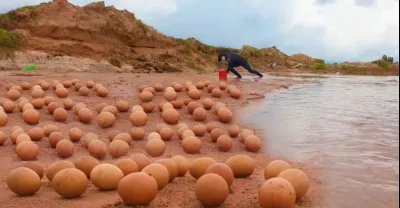 哇 靠譜!一個漁夫用手在地下挖沙子,抓到太多的雞蛋蝸牛蛤蜊