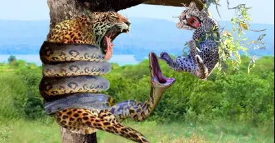 Terrible! Mother Leopard Tries To Struggle In The Giant Python's Embrace To Save Her Cub