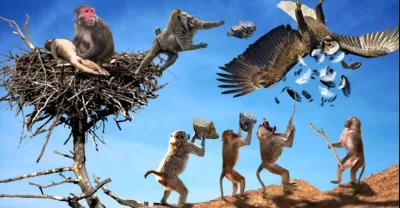 Worthy Of Life! Giant Evil Eagle Is Continuously Attacked By Angry Monkeys When Catch Newborn Baby