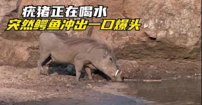 鱷魚一口咬住正在喝水疣豬腦袋,不料下一秒畫風突變
