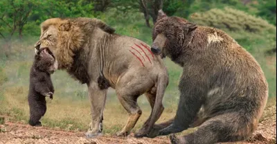 Too Brave! Grizzly Bear Risked His Life Attack Lion King To Save His Baby - Puma vs Bear, Tiger