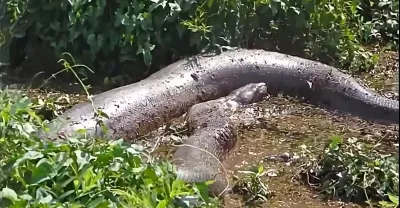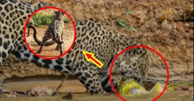瞬殺!美洲豹在水中捕殺水蚺,一口斃命,輕易將其拖上岸,帶回叢林中啃食!